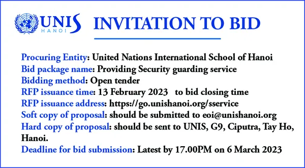 Hard copy of proposal: should be sent to UNIS, G9, Ciputra, Tay Ho, Hanoi. Attn: Ms. Ta Thanh Ha – Business Office.