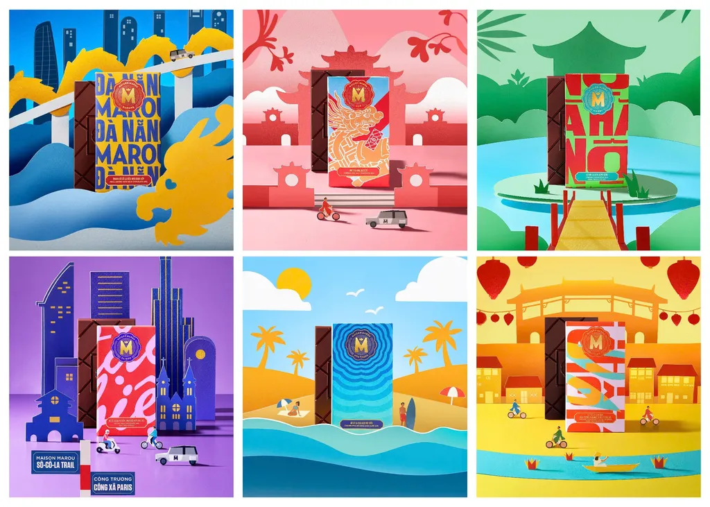 According to the brand, each chocolate bar is a fusion of locally sourced ingredients, regional cultural inspiration, and visual symbols unique to each city—forming a flavourful trail across the length of Việt Nam. Every wrapper is individually designed to reflect local character with a modern artistic touch, turning each bar into a beautifully crafted souvenir.