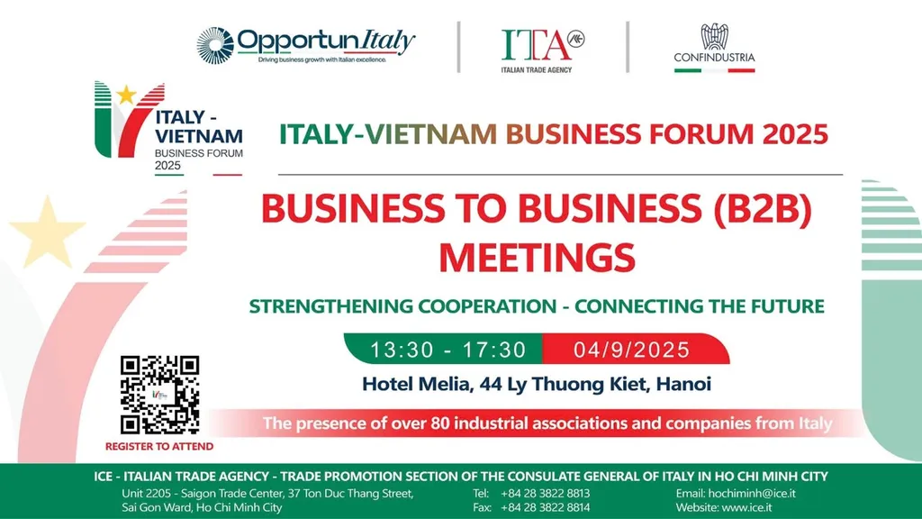 This event is regarded as a key highlight in trade promotion activities between the two nations. Vietnamese companies will have the opportunity to meet, exchange ideas, and establish strategic cooperation with reputable associations and businesses from Italy.