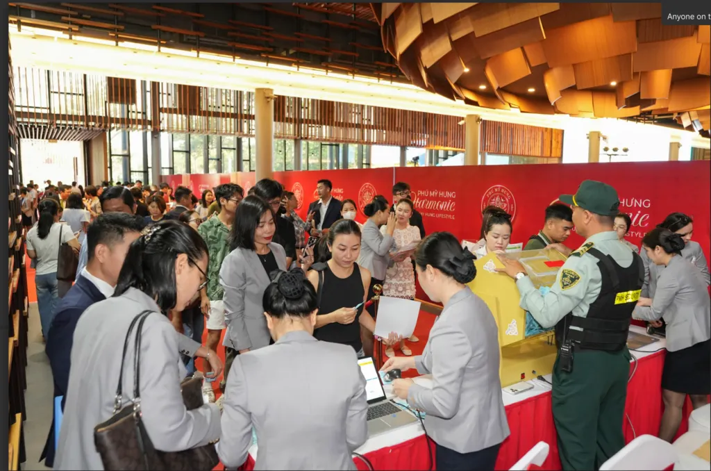 | Dozens of customers, including numerous foreigners, attend the second sales phase of the Phú Mỹ Hưng Harmonie project. — Photo Courtesy of Phú Mỹ Hưng Development Corporation. |