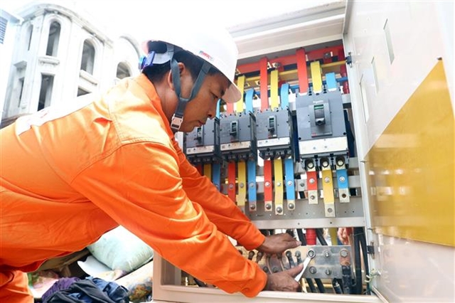 Hà Nội electricity workers checked power supply in Chương Dương Ward, Hà Nội. — VNA/VNS Photo Huy Hùng |