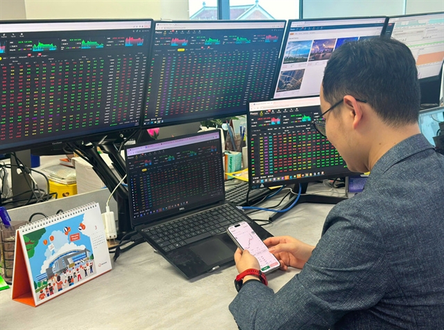 A trader works at a securities firm's office in Hà Nội. — Photo vietnamplus.vn |