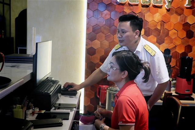 | Tax officials in Hải Phòng guide household businesses on shifting from flat-rate tax to self-declaration and using e-invoices. — VNA/VNS Photo Hoàng Ngọc |