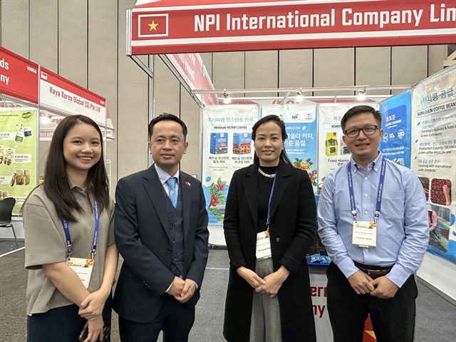 | NPI director Nguyễn thị Minh Hiền (left) explore the new Korean market for their coffee with coconut flavour which was already exported to some ASEAN countries, Switzerland and the United States. — VNS Photo Mỹ Hà |