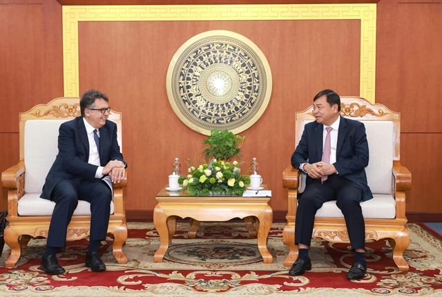 | Remy Ejel, chief executive officer for Nestlé Zone Asia, Oceania and Africa (left) had a meeting with Deputy Minister of Agriculture and Environment Nguyễn Hoàng Hiệp. — Photo courtesy of the firm |