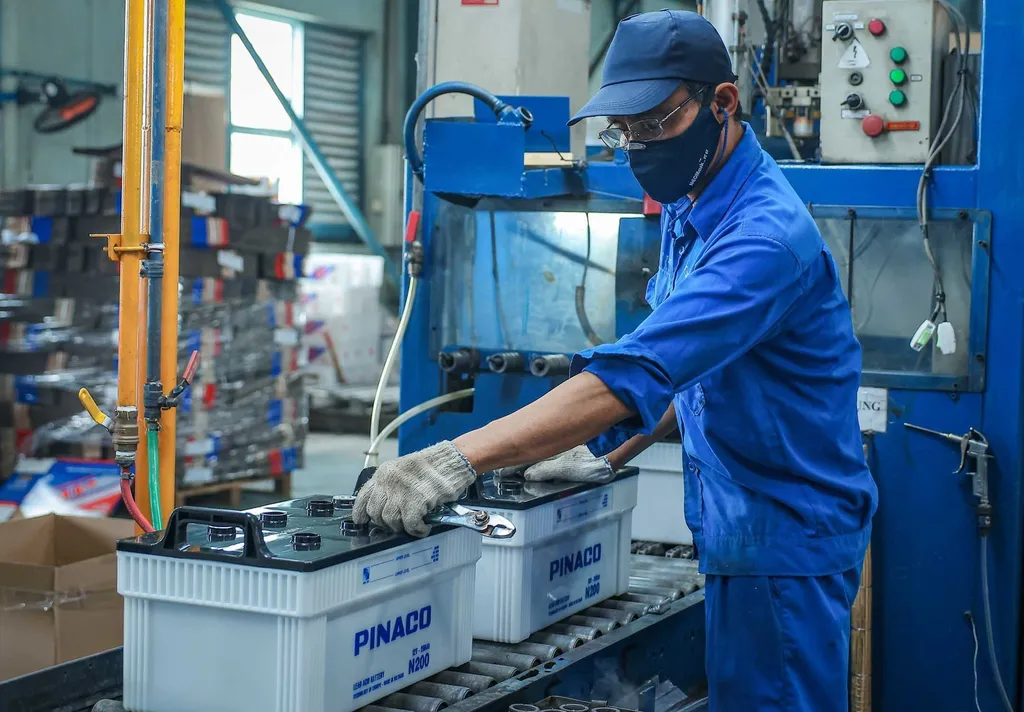 | A worker of Đồng Nai-based PINACO company controls a batery manufactuing assembly. — VNS/VNS Photo Hoàng HIếu |