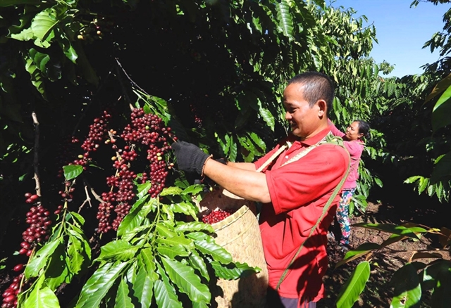 | Farmers during coffee harvest in Đắk Lắk Province. VNA/VNS Photo |