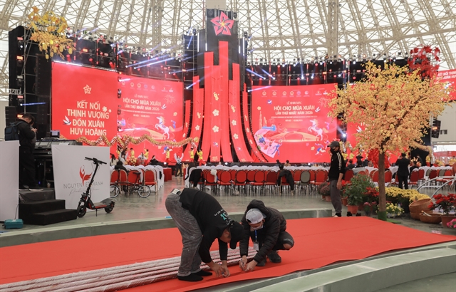 | Finishing touches are being put on the booths at the Spring Fair 2026. — VNA/VNS Photo |