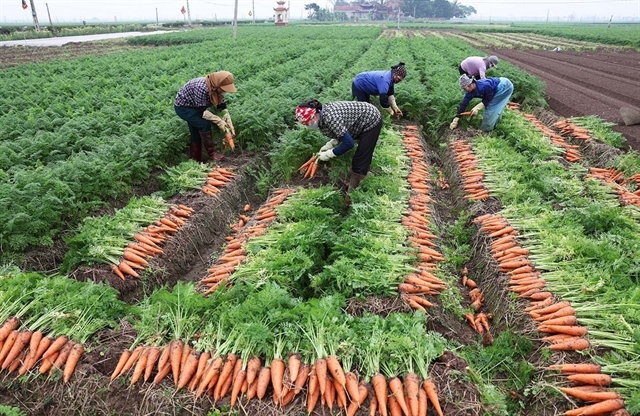 | Farmers harvest carrots for export on a farm in Hải Phòng. The agriculture sector needs to strengthen market forecasting and tighten food safety control to promote agro-forestry-fishery export growth. — VNA/VNS Photo Vũ Sinh |