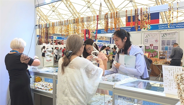 | Visitors are at the booth of a Polish exhibitor. — VNS Photos Ly Ly Cao |