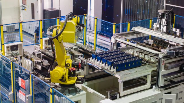| A view of the plant’s automated battery manufacturing process. |