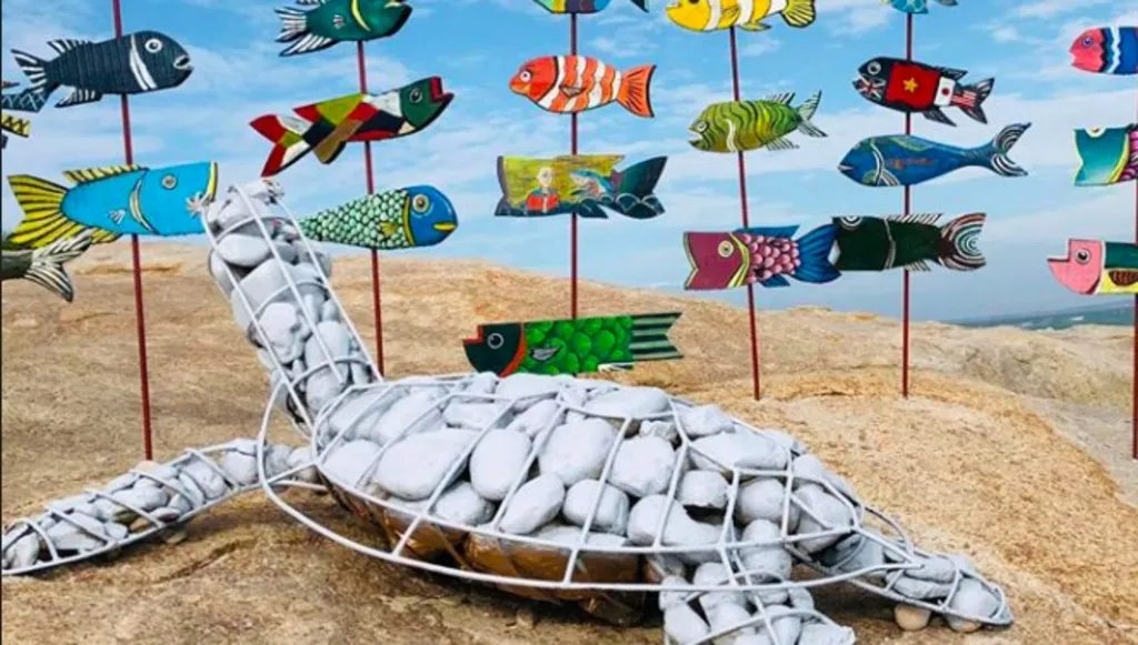 | TURTLE TROVE: An art installation created by IUCN volunteers promotes the conservation of the marine ecosystem, particularly sea turtles and other species in Hòn Cau Marine Protected Area. Photo courtesy of IUCN Việt Nam |