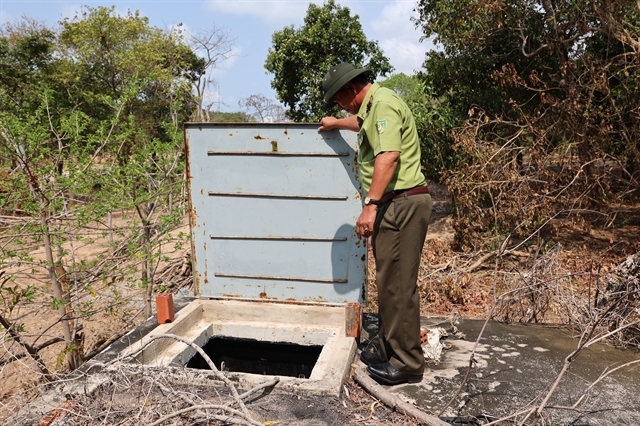 | A ranger from the Phú Mỹ Forest Protection Unit inspects a water tank used for forest fire prevention in the Minh Đạm Mountain area in HCM City’s Long Hải commune. — VNA/VNS Photo Hoàng Nhị |