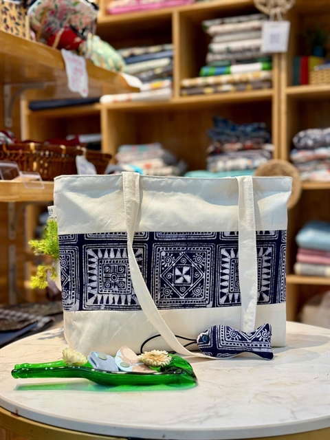 | Gaea offers a diverse range of recycled products, including bags made from used plastic, clothes and bedding made from misprinted canvas paintings. Photo courtesy of Đỗ Diệu Linh |