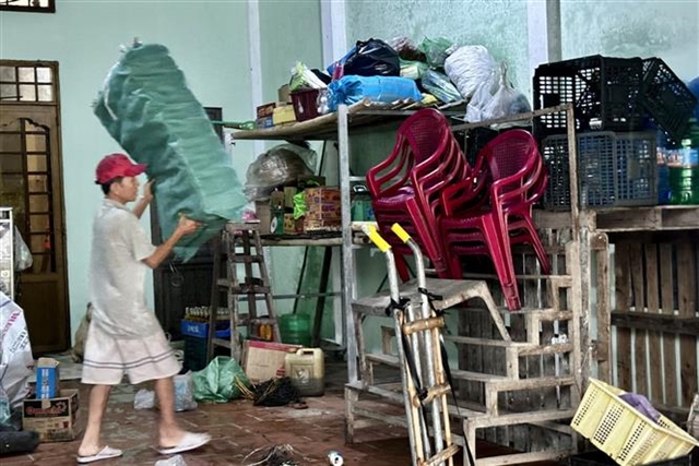 | Residents in Đại Lộc Commune move their belongings to higher ground as floodwaters continue to rise. |