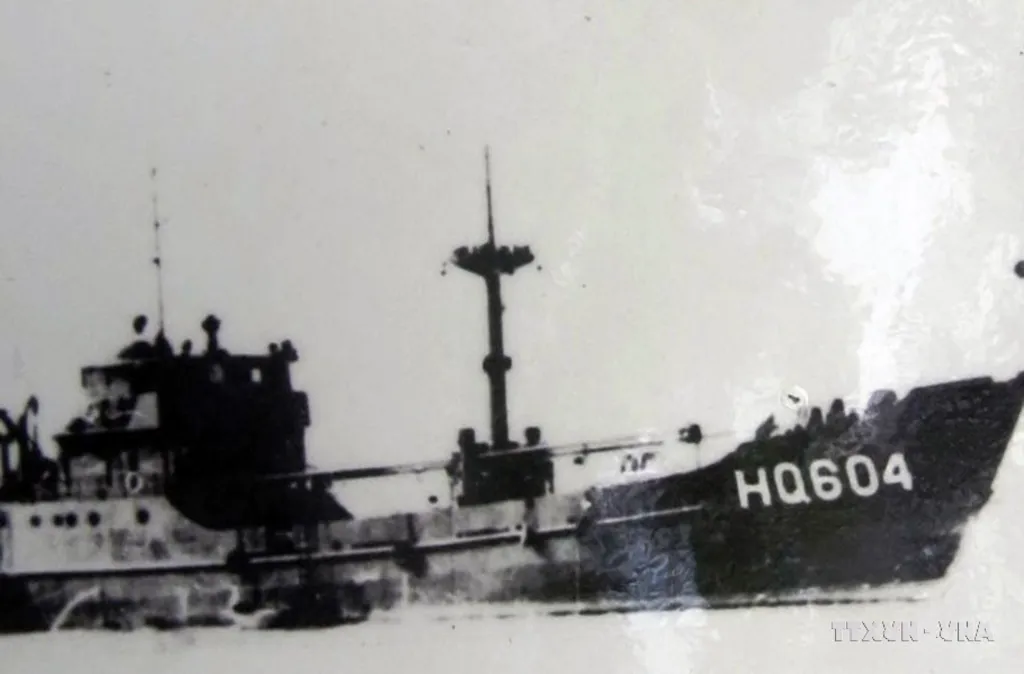 | Ship HQ-604 departs from the mainland for Trường Sa on a mission just three days before the battle to defend sovereignty, during which it was sunk by enemy vessels at Gạc Ma on March 14, 1988. |