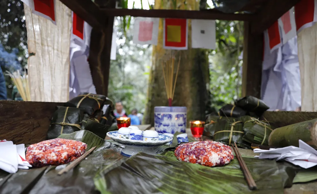 The ceremony is held to give thanks to the spirits of the forest and mountains, while praying for favourable weather, good harvests, family well-being and peaceful, prosperous villages.