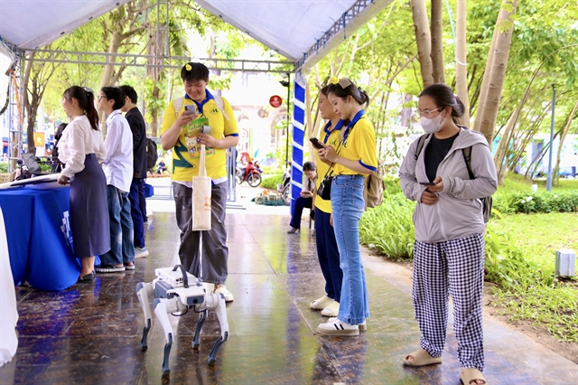 | A robotic dog attracts young visitors at the Technology and Innovation Space at the annual HCM City Youth Festival (Youth Fest 2026) held from March 20 to 22. — VNS Photos Nguyễn Diệp |