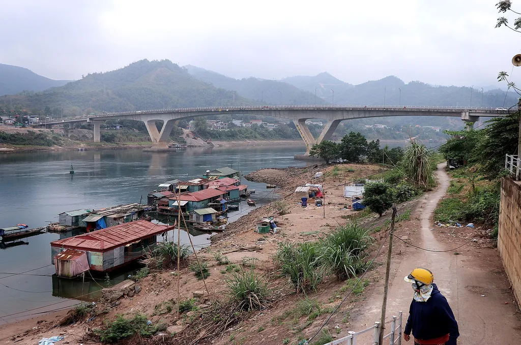 Nguyễn Văn Minh, a resident of Hòa Bình Ward, said such low water levels typically occur toward the end of the dry season, when upstream inflows decline and hydropower reservoirs limit discharge. Phạm Xuân Quỳnh, who operates a sand yard near Hữu Nghị Hòa Bình Bridge, noted that current water levels are about 25–30 metres lower than during the flood discharge period in September–October 2025.