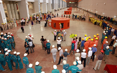 ) The sixth turbine of Son La Hydro-electric Plant in northern Son La Province joined the national grid yesterday, marking the completion of the nation's biggest power plant. Construction of the plant, consisting of six turbines with capacity of 400MW each, was kicked off in 2005 and expected to be inaugurated next December, adding about 10.2 billion kWh each year. — VNA/VNS Dieu Chinh Toi