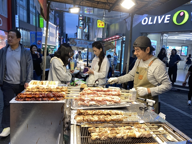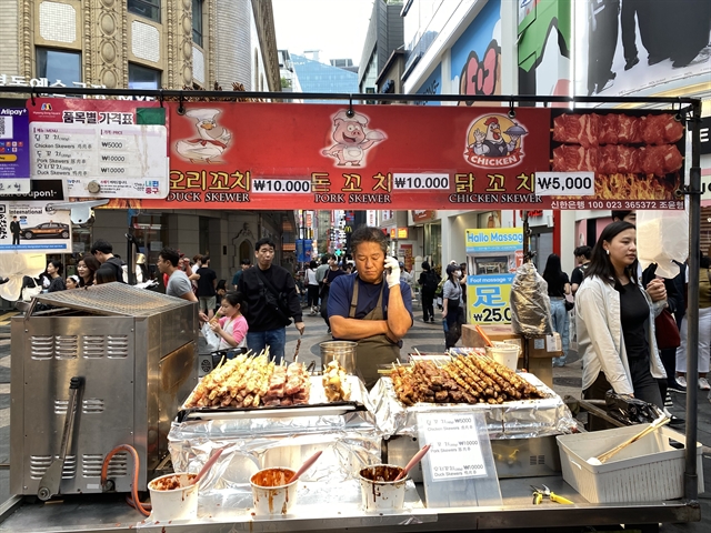 Beyond shopping, Myeongdong is also a food lover’s paradise. Especially on weekends or in the evenings, the streets come alive with countless eateries serving delicious dishes. Here, you can find nearly all of Korea’s most popular street foods, ranging from local favorites to international specialties. Join Việt Nam News and Law reporters as we explore the unique charms of this vibrant area.