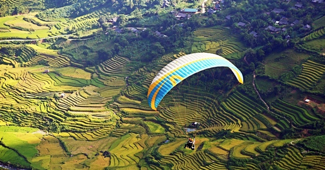 Paragliding is a must-try experience when visiting Hoàng Su Phì, offering travellers a breathtaking aerial view of its mysterious landscape. Photo danatravel.com.vn |