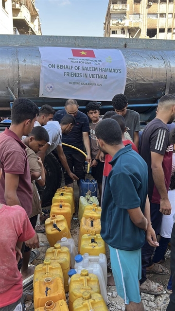 HÀ NỘI — Aid from Vietnamese friends has reached northern Gaza, providing much-needed food and clean water to Palestinian families, including children. Palestinian Saleem Hammad entrusted donations to the Moonlight Humanity Foundation, which coordinated delivery of rice and lentil soup and clean water to local communities.