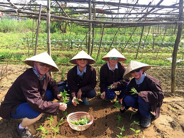 Tourists take part in farming experiences at EMIC Travel’s garden tour in Hội An — one of the city’s most popular sustainable tourism activities. Photo courtesy of EMIC Travel |