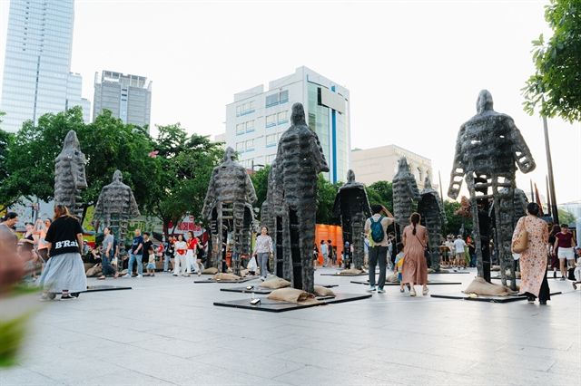 Earlier, on April 19, artist Lê Hữu Hiếu unveiled his large-scale installation 'From the Victory of Bạch Đằng to the Great Victory of April 30, 1975' on Nguyễn Huệ Walking Street in HCM.