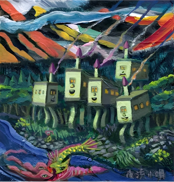 | Riverside God, an acrylic painting by Japanese artist Koutaku Yoshinaga. Photo courtesy of the artist |