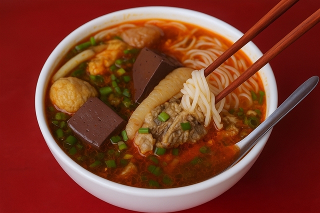 | A hearty bowl of Đà Lạt-style beef noodle soup, rich with herbs and local vegetables, offers both flavour and warmth in every spoonful. Photo vietgiaitri.com |