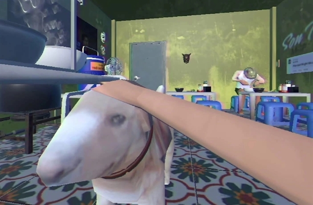 | Players have to keep an eye on their pet dog, called Cậu Vàng (Golden Boy), who frequently escapes his leash. — Screenshot of the game |