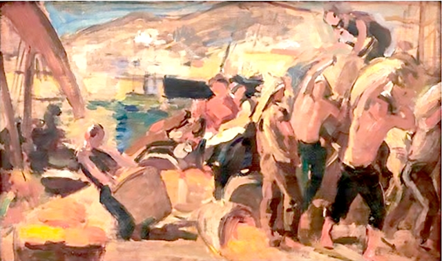 | 'Những Người Công Nhân Bến Cảng' (The Dock Workers), an oil on canvas, 1902-1904, by Victor Tardieu, the first Principal of the VNUFA. The work is part of a collection by the A&V Foundation. Photo courtesy of the VNUFA |