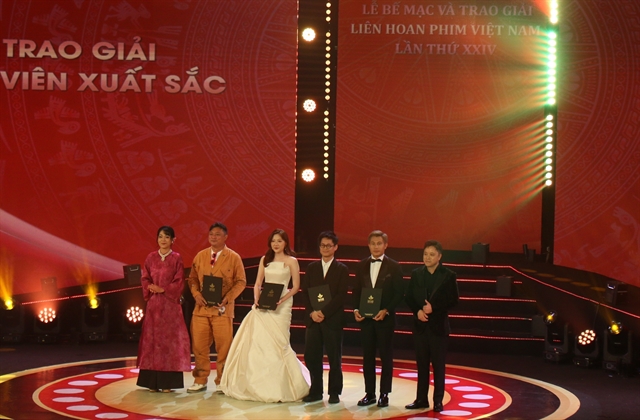 | TOP ACTORS - Phương Anh Đào (C) and Bảo Định (second from right) receive awards for Best Leading Actress and Best Supporting Actor. — VNA/VNS Photo Thu Hương |