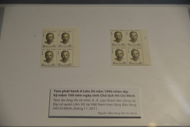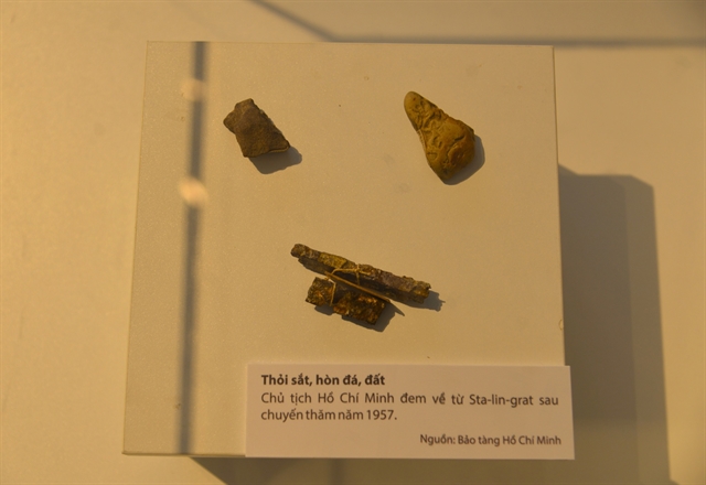Other items on display include a stamp set issued by the Soviet Union in 1990 to commemorate the 100th anniversary of President Hồ Chí Minh’s birth, a red scarf and Soviet children’s badges presented to the President, and iron ingots, stones and soil he brought home from Stalingrad following his friendship visit to the Soviet Union in 1957.