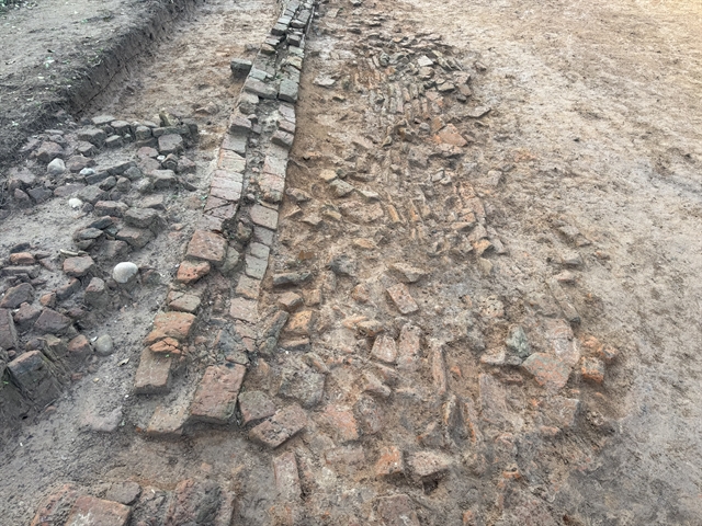 | Stones and bricks are found on the surface of the newly excavated entrance road in the Mỹ Sơn Sanctuary. The road would be built from the 10th to 12 century. Photo courtesy of Công Khiết |