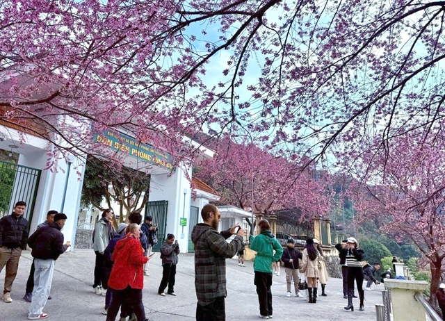 | Cherry blossoms are gradually emerging as a new tourism symbol at the Lũng Cú Border Guard Station. |