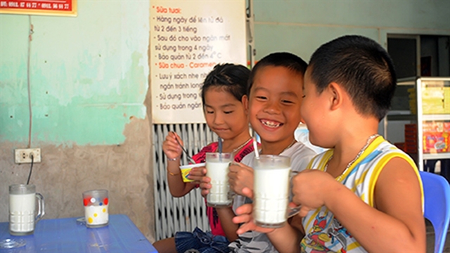 | Children enjoy Ba Vì fresh milk with delight. — Photo Znews.vn |