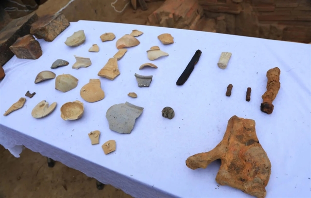 | Many artefacts have been retrieved from the excavation. — Photo courtesy of Vàng Danh Ward Information Page |