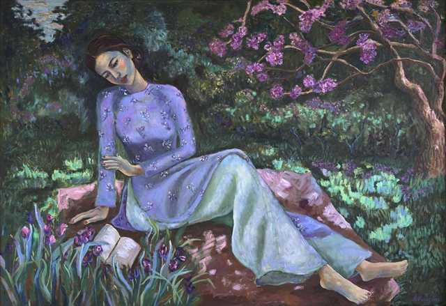 | Leisure Time, oil on canvas, by painter Lê Trang. |