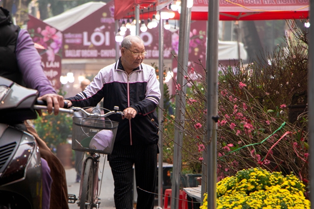 | Nguyễn Văn Nam, 84 years old, strolls along, admiring the rows of flowers. The pleasure of choosing flowers for the Lunar New Year is both a tradition and a hobby of Hà Nội residents that has existed since ancient times. VNS Photo Bảo Long |