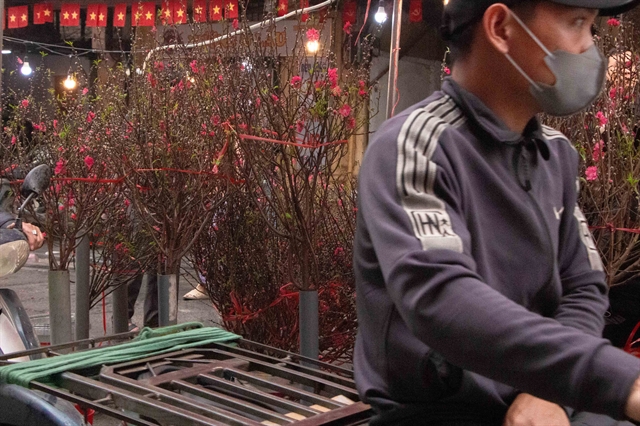 | A delivery driver weaves through the rows of flowering trees, waiting for calls to help customers transport flowers from here to their homes. VNS Photo Bảo Long |