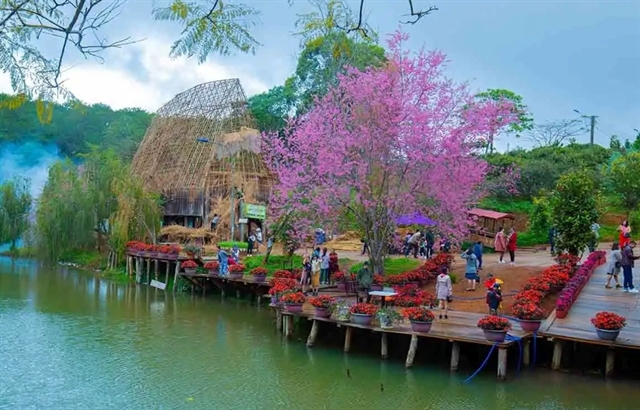 Visitors can savour bamboo-tube rice, jar wine, stream fish, wild vegetables and smoked meat, while joining locals in farming, forest walks and fishing. Another tranquil stop is Kon Tu Ma Village, where small stilt houses are scattered across fields and hills, offering a peaceful setting for an early-spring journey. — VNS