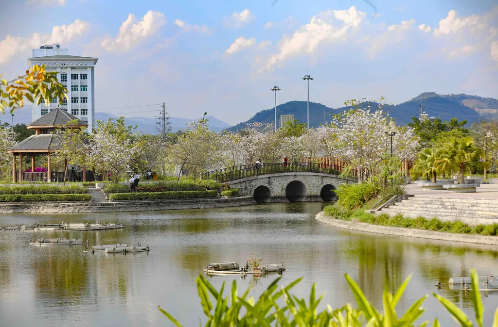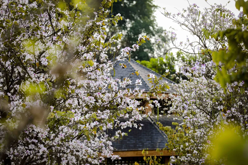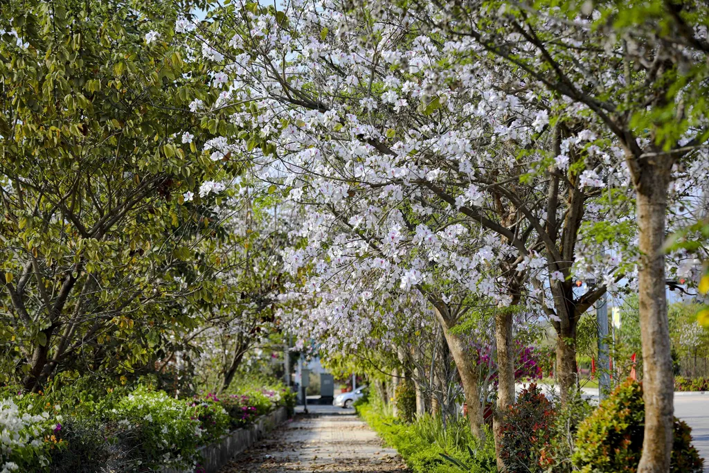 | Bauhinia branches line walkways, offering a gentle and soothing atmosphere for visitors. |