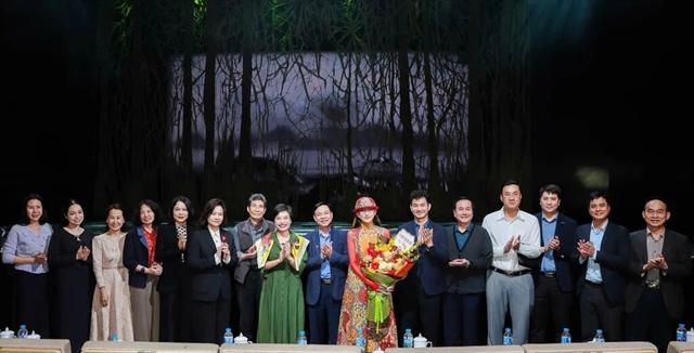 | Officials from the Performing Arts Department and representatives of Hà Nội’s cultural authorities congratulate choreographer Yang Liping following a performance of The Peacock Hanoi 2026. — Photo courtesy of VietAr |