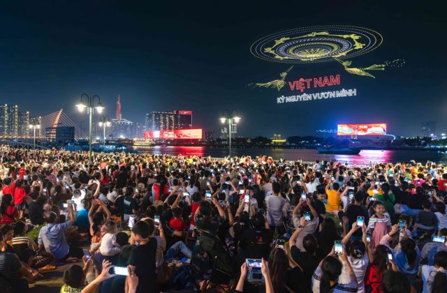 Meanwhile, Kỷ Nguyên Vươn Mình (The Rising Era) by Nguyễn Văn Trung, taken on April 30, 2025, portrays tens of thousands gathered along the Sài Gòn River to witness a world-record drone light show featuring 1,500 devices. The dazzling display illustrated both the history and the forward-looking development of HCM City.