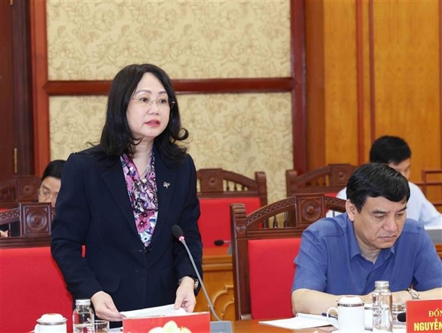 | Party Central Committee member and Standing Deputy Minister of Culture, Sports and Tourism, Lâm Thị Phương Thanh, presents a report at the meeting. — VNA/VNS Photos |
