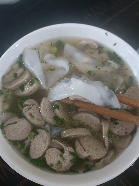 | MOUNTAIN ROLLS: Bánh cuốn Hà Giang with pork bone broth and green onions. — VNS Photo Đoàn Tùng |