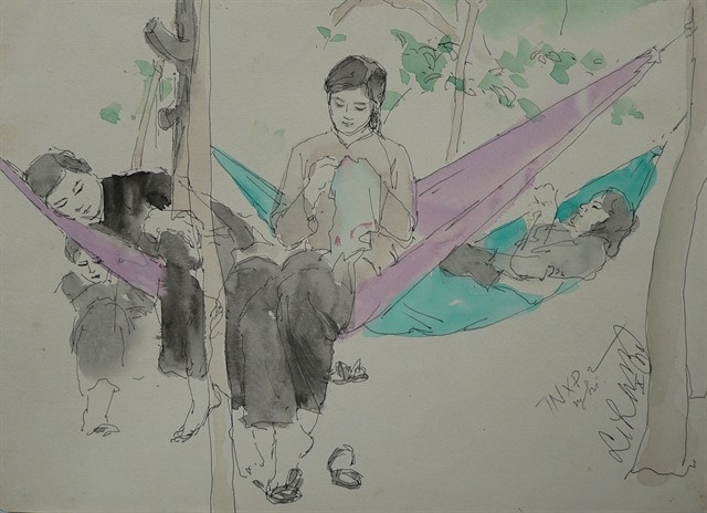 The paintings vividly show the beauty of people, nature and the simple daily life of Vietnamese villages.