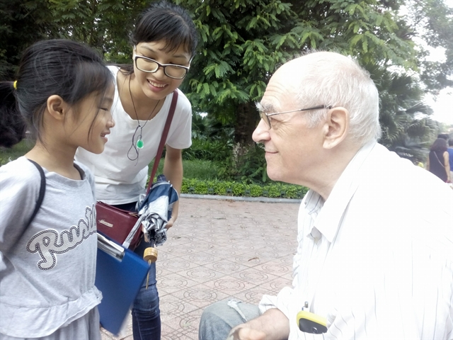 | Roby Bellemans speaks with a Vietnamese girl during an event aimed at bringing the arts closer to children. He founded the Art for Children Gallery project to create English-language stories inspired by artwork in Việt Nam. Photos courtesy of Roby Bellemans |